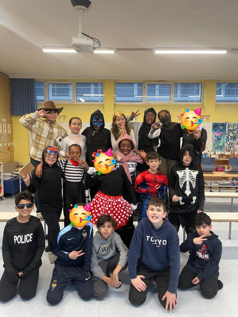 Vier Stunden lang wurde gemeinsam gefeiert, gelacht und getanzt. In den Klassen startete der Tag mit einer Kostümvorstellung, bei der jedes Kind sein Outfit zeigen konnte. Anschließend wurde gespielt, gesungen und natürlich auch genascht, denn Süßigkeiten durften an diesem besonderen Tag nicht fehlen.